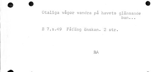 //// Otaliga vågor vandra på havets glänsande //// ban... //// B 7,s.49 Fåfäng önskan. 2 str. //// i //// RA ////