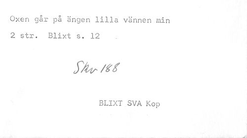 //// Oxen går på ängen lilla vännen min 2 str. Blixt s. 12 //// XV /et //// BLIXT SVA Kop ////