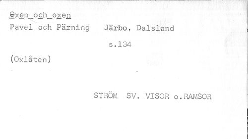 //// ©xen_och_oxen //// » * //// Pavel och Parning Järbo, Dalsland //// s.134 //// (Oxlåten) //// STRÖM SV. VISOR o.RAMSOR //// - ////