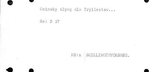 //// Ozinsky slyng din Tryllestav... Se: B 37 //// KB:s.. SKILLINGTRYCKSREG. //// j ' < //// r //// ; ////