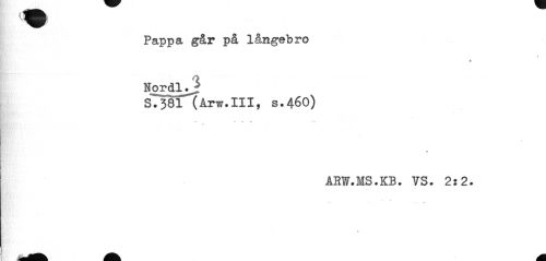 //// Wm //// Pappa går på långebro //// * //// Nordl. //// S.381 (Arw.III, s.46O) //// ... - » 1» fr+, //// ARW.MS.KB. VS. 2:2. ////