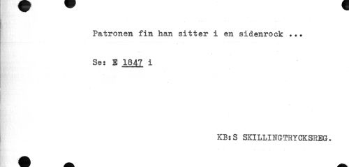 //// Patronen fin han sitter i en sidenrock //// Se: E 1847 i //// KB:S SKILLINGTRYCKSREG. ////