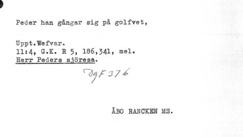 //// Peder han gångar sig på golfvet, Uppt.Wefvar. //// 11:4, G.K. E 5, 186,341, mel. Herr Peders s.iöresa. //// ^F37-é //// ÅBO RMCKEN MS. ////
