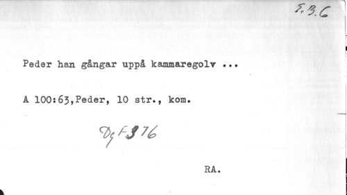 //// d //// i //// ! I i //// Peder han gångar uppå kamraaregolv ... //// \ //// Å 100:63,Peder, 10 str., kom. //// HA. //// k ////