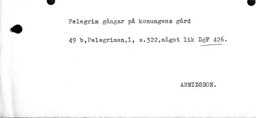//// ^^ Pelegrim gångar på konungens gård //// 49 b,Pelegrimen,I, s.322,något lik DgF 426. //// ARWIDSSON. ////