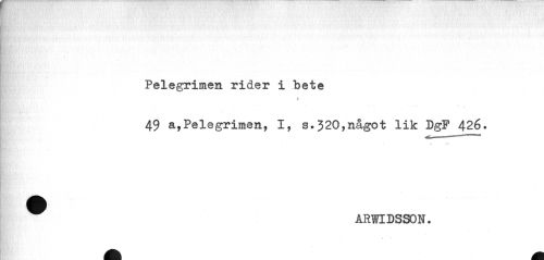 //// Pelegrimen rider i bete //// I //// 49 a,Pelegrimen, I, s.320,något lik DgF 426. ^ ARWIDSSON. ////