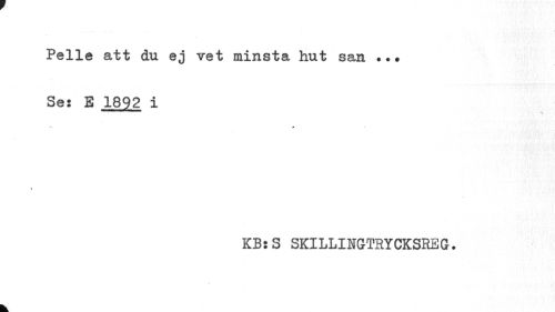 //// Pelle att du ej Tet minsta hut san ... Se: E 1892 i //// # //// KB:S SKILLINGTRYCKSREG. //// Il ////