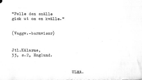 //// "Pelle den snälle gick ut om en kvälle.11 //// ( Yaggv. -barnvisor) //// Jtl.Kälarne, 33, s.2, Englund. //// ¦ W i\y ' //// ULM. //// 1' ttxBi //// ... ' ////