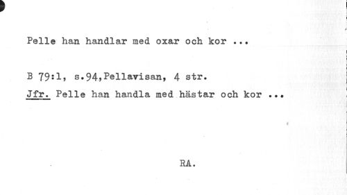 //// f ; //// i //// i f //// i //// Pelle han handlar med oxar och kor ? ? * //// ! //// i //// B 79:1, s.94,Pella.visan, 4 str. //// Jfr. Pelle han handla med hästar och kor ••• ! //// ( //// -.I //// RA. ////