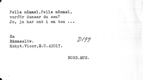 //// Pelle måmmel,Pelle måmmel, varför dansar du sau? Jo, ja har ont i en tau ... //// Ha ~ a //// Ränneslöv. /sfy/ //// Mskp t. Vi s o r, E. TJ. 42017 • //// NORD.MUS. //// # //// k ////