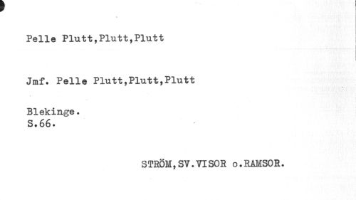 //// T //// Pelle Plutt,Plutt,Plutt Jmf. Pelle Plutt,Plutt,Plutt //// « //// k //// Blekinge. //// S.66. //// STRÖM,SV.YlSOR o.RAMSOR. ////