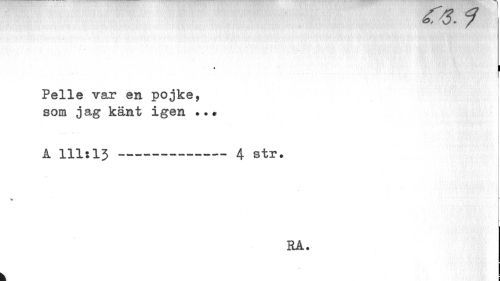 //// £ a y //// Pelle var en pojke, som jag känt igen • //// k 111:15---*---4 str. //// - //// r //// RA. //// k ////