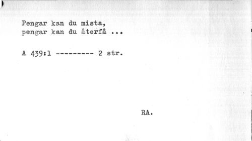//// r //// Pengar kan du mista, [ //// pengar kan du återfå .•• \ //// A 439:1 --- 2 str. //// [ //// i //// RA. //// I ////