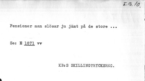 //// 'O. /O //// ! i //// L //// i //// j //// i //// t //// i //// Pensioner man slösar ju jämt på de store //// # //// .v //// f //// Se: E 1871 w //// - //// KB:S SKILLINGTRYCKSHEG. //// ¦ //// I //// I //// ! //// i ////