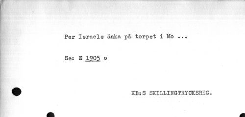 //// Per Israels änka på torpet i Mo *«• //// Se: E 1905 o //// i ^ KB:S SKILLINGTRYCKSREG. ////
