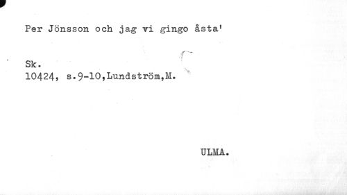 //// Per Jönsson och ja g vi gingo åsta1 ' Sk. //// 10424, s.9-10,Lundström,!. //// ULMA. ////