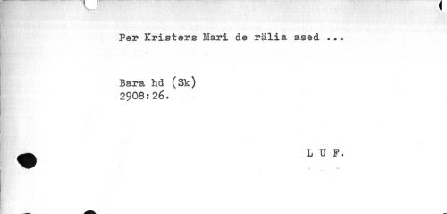 //// Per Kristers Mari de rälia ased //// Bara hd (Sk) 2908:26. //// ^ L U F. ////