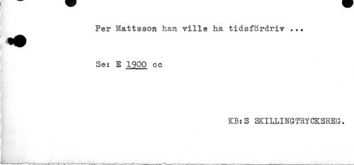 //// Per Mattsson han ville ha tidsfördriv ... Se: E 1900 cc //// KB:S SKILLIIGfRYCKSREG. //// i ////