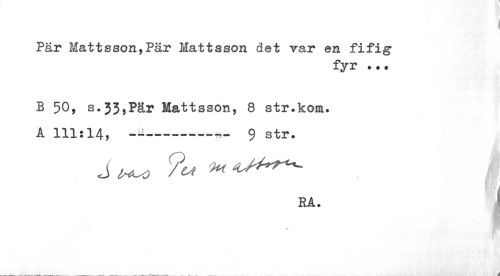 //// j //// Pär Mattsson,Pär Mattsson det rar en fifig //// fyr ... //// B 50, s.33,Pär Mattsson, 8 str.kom. A 111:14, -ii--- 9 str. //// RA. I //// ! 'foffp v ////
