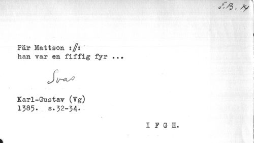 //// sy //// ¦ //// I i //// I P //// Pär Mattson ://: i //// han var en fiffig fyr .. * //// i //// Karl-Gustav (Vg) //// 1385. s.32-34. //// I F G H. //// • ... //// 1 //// k ////