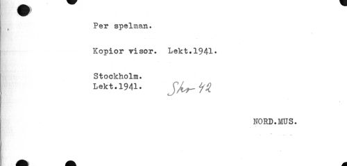 //// Per spelman. //// Kopior visor. Lekt.1941* Stockholm. //// Lekt. 1941- J)^ ^ //// NORD.MUS. //// —• , fr> ////
