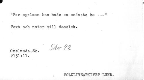 //// I //// "Per spelman han hade en endaste ko ---M //// i //// Text och noter till danslek. //// » //// Onslunda,Sk. 2131:11. //// i //// FOLKLIVSARKIVET LUND. ////