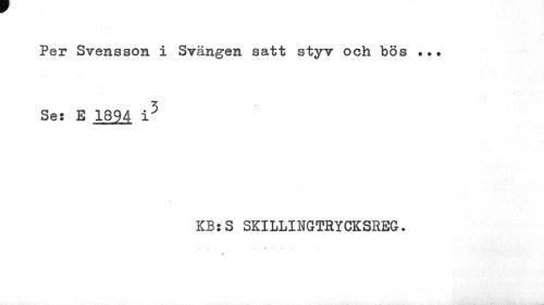//// Per Svensson i Svängen satt styv och bös ... //// Ses E 1894 i5 //// KBsS SKILLINGTRYCKSREG. //// « ////