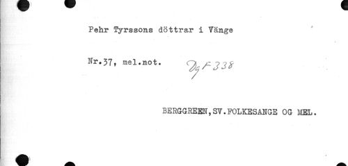 //// Pehr Tyrssons döttrar i Tånge //// Nr.37, mel.not. O /: J //// / //// BERGGREEN,SV.FOLKESANGE OG MEL. ////