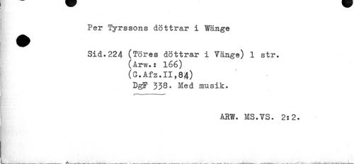 //// Per Tyrssons döttrar i Wänge //// Sid»224 (Tores döttrar i Vange) 1 str. //// (Arw.: 166) (G.Afz.11,84) //// DgF 338* musik. //// < — ... //// A1W. MS.YS. 2:2. ////