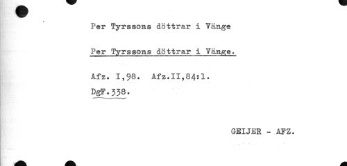 //// • __ //// Per Tyrssons döttrar i länge //// Per Tyrssons döttrar i Van^e» //// Åfz• 1,98. Åfz.II,84:l. DgP.338. //// GEIJjER - APZ. //// ¦ . //// » ////