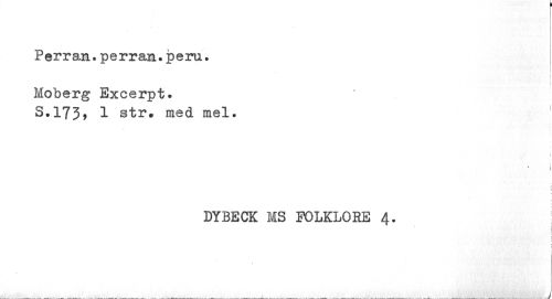 //// I //// l //// Perran. perran. peru. //// Moberg Excerpt. S.173, 1 str. med mel. //// v //// i # //// 1 //// DYBECK MS FOLKLORE 4. //// 1 //// I 1 //// 1 //// 1 //// j ////