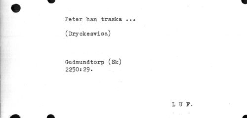 //// Peter han traska (Dryckesvisa) //// Gudmundtorp (Sk) //// 2250:29- //// L U P. ////