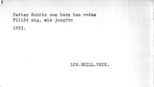 //// v //// Petter Schötz som barn han redan //// Pillåt mig, min jungfru ' //// 1853- //// f //// t y //// i //// : //// ? //// LUB.SKILL.UIIK. //// i ////