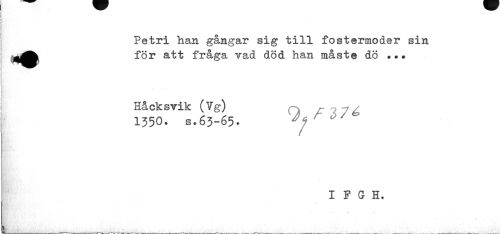 //// Petri han gångar sig till fostermoder sin rn^^t för att fråga vad död han måste dö ?. ? //// Håcksvik (7g) . //// 1350. s.63-65. //// I P G H. //// \ ___ ////