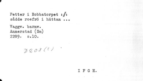 //// Petter i Robbatorpet :/: sådde roefrö i hättan •.• //// Yaggv. barnv. Aoanerstad (Sm) 2289. s.10. //// I P G H. //// k ////