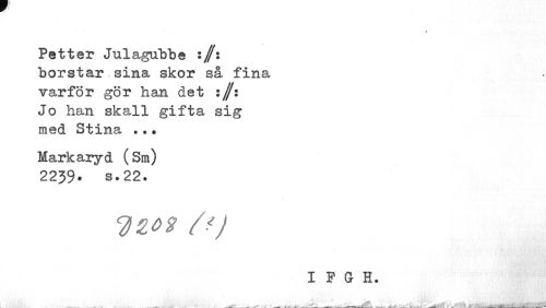 //// Petter Julagubbe :/: borstar sina skor så fina varför gör han det :/: Jo han skall gifta sig med Stina •.• //// Markaiyd (Sm) 2239» s. 22. //// I P G H. //// . - ^tf» iftfT ^ if itfHmf aifflfll -' å TÉlin— i niiäaaiVi V" rirffl**^ itfT ////