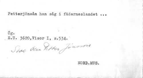 //// Petterjönsån han såg i fäderneslandet //// K* .t'*-.' //// Og. //// . B.TJ. 3620,Visor I, s.534. j //// NORD.ros. ////
