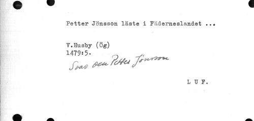 //// b //// Petter Jönsson läste i Fäderneslandet ..» //// 0 //// r* //// V.Husby (Ög) //// 1479:5- , //// >f toi //// LO. //// m - ////