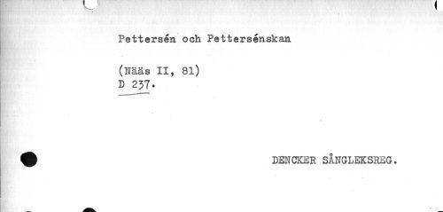 //// Pettersen och Pettersénskan //// d 237- //// ^ DENCKER SANGLEKSREG. //// _ ////