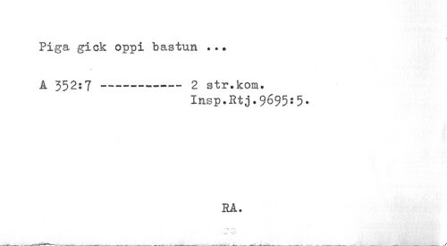 //// Piga gick oppi bastun . //// A 352:7 —---— 2 str.kom. //// Insp.Rtj.9695:5. //// RÅ. ////