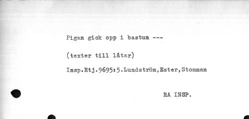 //// » //// Pigan gick opp i bastun--- //// (texter till låtar) //// Insp.Rtj•9695? 5•Lundström,Ester,Stomman ® RA INSP. ////