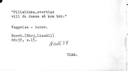 //// i //// m //// "Pillelinke, svartöge 1 //// vill du dansa så kom här.tt //// < //// i //// 7aggvisa - barnv. //// f //// Korrl.(Härj,Linsäll) 88:37, s.15. a .. //// MnJlW //// i } //// j //// ULMA. ////