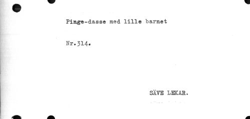 //// Pinge-dasse med lille barnet //// Kr.314» //// « //// SÄVE LEKAR. //// » m —»V ////