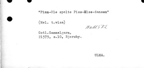//// "Pinn-Ole spelte Pis s-El se-dansen" //// (Mel. t.visa) //// Gotl.Gamraelgarn, //// 21379, s.10, Bjersby. //// K*^ //// ULMA. //// ¦ //// s ////