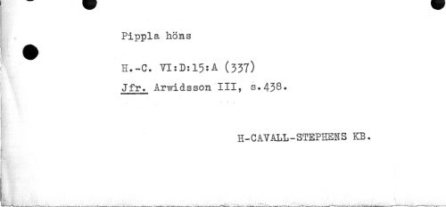 //// Pippla höns //// H.-C. 7I:D:15:A (337) Jfr. Årwidsson III, s.438* //// t r- * //// H-CAVALL-STEPHENS KB. //// V ; A ////