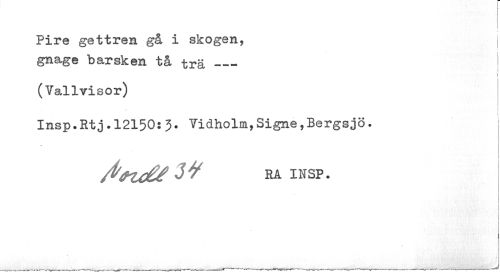 //// Pire gettren gå i skogen, I //// gnage barsken tå trä ___ //// i //// i //// (Yallvisor) //// Insp•Rt j.12150:3. Yidholm,Signe,Bergsjö. //// 3V RA INSP. ////