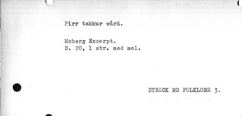 //// — ™ //// T //// Pirr takkur wårä. //// v. v. //// Moberg Excerpt. S. 20, 1 str. med mel. //// ® DYBECK MS FOLKLORE 3. //// \ //// -V -fc * » Al ////