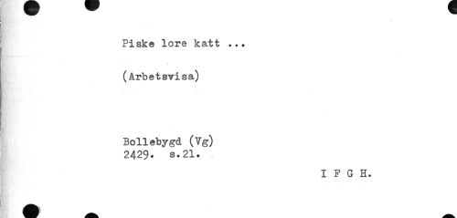 //// Piske lore katt ... (Arbetsvisa) //// » //// Bollebygd (Vg) 2429. s.21. //// I F G H. //// M m ////