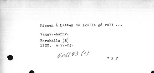 //// Pissen å katten de skulle gå vall . //// Vaggv.-b arnv. //// Porshälla (b) 1120, s.22-23. //// # W93 /</ ////