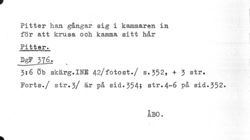 //// Pitter han gångar sig i kammaren in för att krusa och kamma sitt hår //// Pitter. //// 3:6 Öb skärg.INE 42/fotost./ s.352, + 3 str. Ports./ str.3/ är på sid.354? str.4-6 på sid.352. //// ÅBO. //// k ////